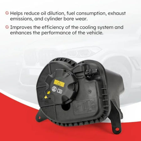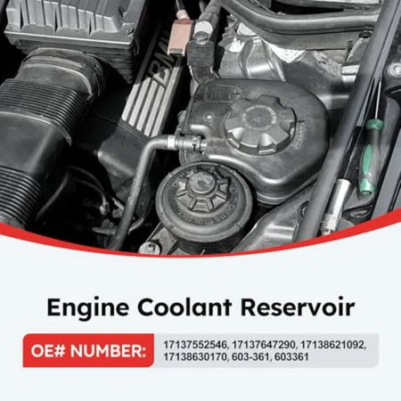 - Αποκαθιστά τη αξιόπιστη χωρητικότητα ψυκτικού και την πίεση του συστήματος για κινητήρες 2.0L, 3.0L, 4.4L και 4.8L που βρίσκονται σε X5 και X6 από το 2007–2019, βοηθώντας στην πρόληψη υπερθέρμανσης και απώλειας ψυκτικού.