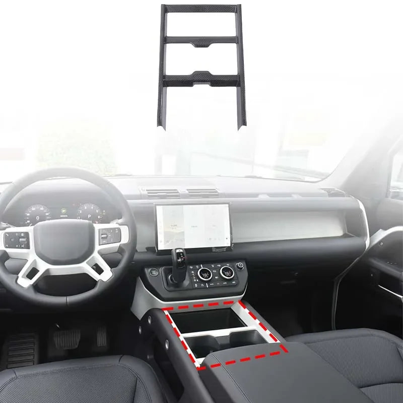 - 1 τεμάχιο Αυθεντικό Αυτοκόλλητο Πάνελ Κεντρικής Κονσόλας από Άνθρακα για Land Rover Defender 90/110/130 (2025+)
