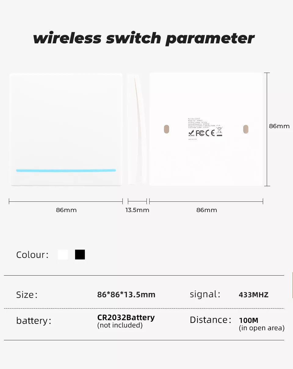 Αναβαθμίστε τον έλεγχο φωτισμού του σπιτιού σας με το 2 Gang RF 433Mhz Smart Home Push Wireless Switch. Με μια κομψή σχεδίαση φωτεινής λωρίδας και φωτεινό κουμπί, αυτός ο διακόπτης προσφέρει τόσο στυλ όσο και λειτουργικότητα. Με ένα ασύρματο τηλεχειριστήριο που λειτουργεί σε απόσταση έως 100m, μπορείτε εύκολα να ανάψετε ή να σβήσετε τα φώτα σας από απόσταση. Η ανθεκτική κατασκευή εξασφαλίζει μηχανική ζωή 10.000 κύκλων, παρέχοντας μακροχρόνια αξιοπιστία. Αναβαθμίστε την εμπειρία φωτισμού του σπιτιού σας με αυτόν τον έξυπνο διακόπτη σήμερα!