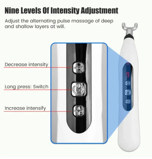 - Χαρακτηριστικά: Ηλεκτρονικό στυλό βελονισμού 5‑σε‑1; χωρίς πόνο; χωρίς παρενέργειες; μαγνητική θεραπεία; διέγερση μεσημβρινών και σημείων βελονισμού