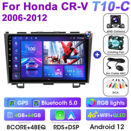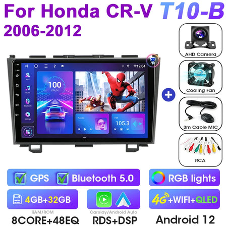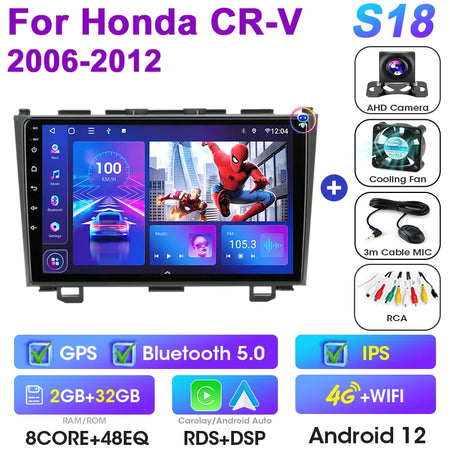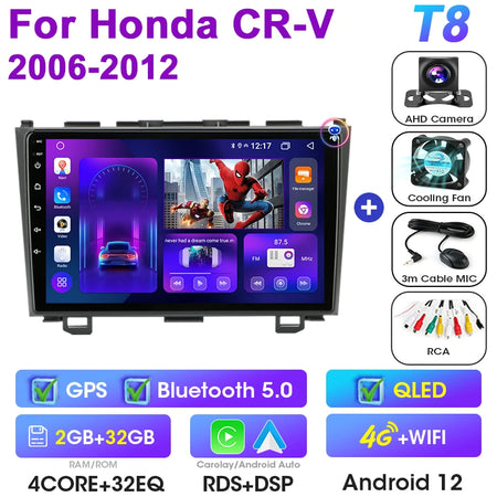 Ραδιόφωνο αυτοκινήτου 2 Din Android 12 για Honda CRV 2006 έως 2012 GPS Πλοήγηση CarPlay 4G IPS 9 ιντσών Κεντρική μονάδα