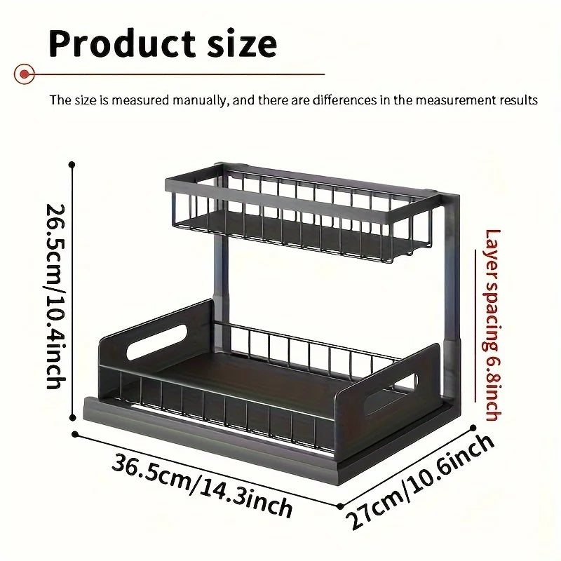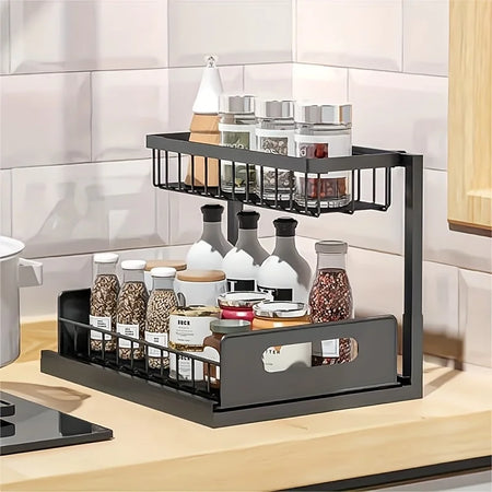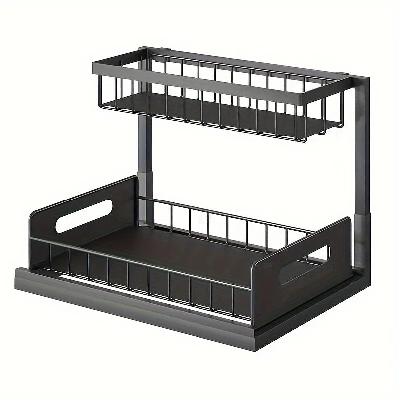 Διώροφη Οργανωτής Ντουλαπιού από Ανοξείδωτο Χάλυβα με Σύστημα Έλξης για Αποθήκευση Κάτω από τον Νιπτήρα