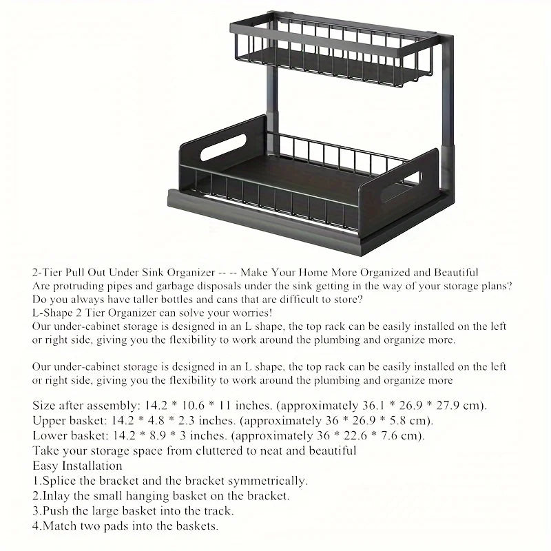 Απλοποιήστε το χάος κάτω από τον νεροχύτη με τον 2-επίπεδο οργανωτή ντουλαπιού από ανοξείδωτο χάλυβα. Αυτός ο ανθεκτικός οργανωτής γλιστρά ομαλά σε ενσωματωμένες ράγες, προσφέροντάς σας δύο επίπεδα αποθήκευσης για μπουκάλια, καθαριστικά, σφουγγάρια και άλλα απαραίτητα. Κατασκευασμένος από ανοξείδωτο χάλυβα, αντέχει στη σκουριά και καθαρίζεται γρήγορα με ένα μικροϊνικό πανί. Ο σχεδιασμός που βγαίνει βάζει τα πάντα σε απόσταση χεριού, ώστε να μην χρειάζεται να ψάχνετε για αντικείμενα σε ένα σκοτεινό ντουλάπι πια. Μια τακτοποιημένη, προσβάσιμη λύση αποθήκευσης κάτω από τον νεροχύτη που βοηθά στη μείωση της ακαταστασίας, των διαρροών και του χαμένου χρόνου κατά τη διάρκεια της ρουτίνας καθαρισμού σας.