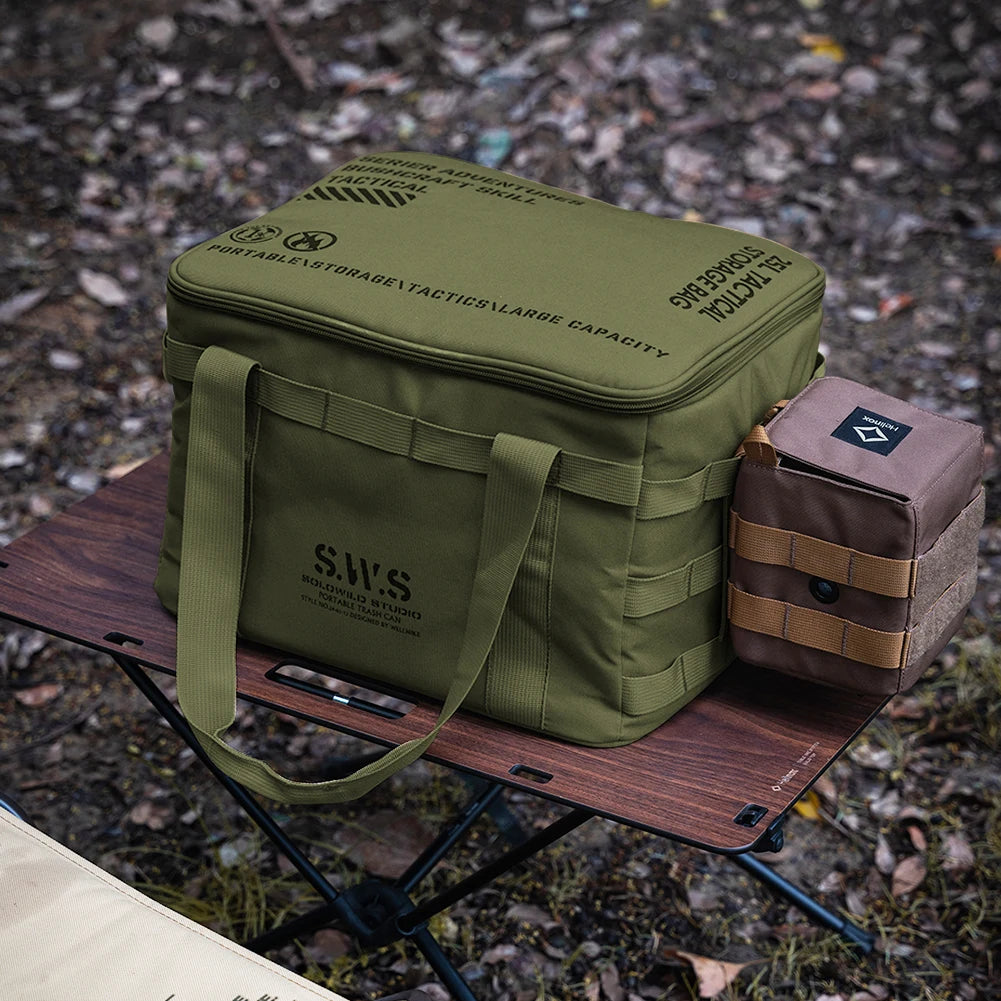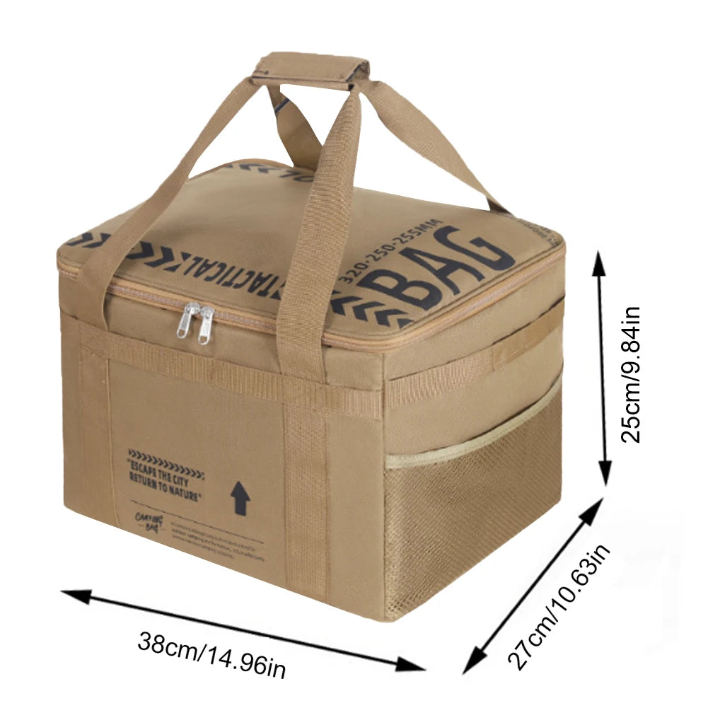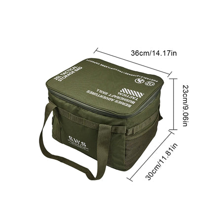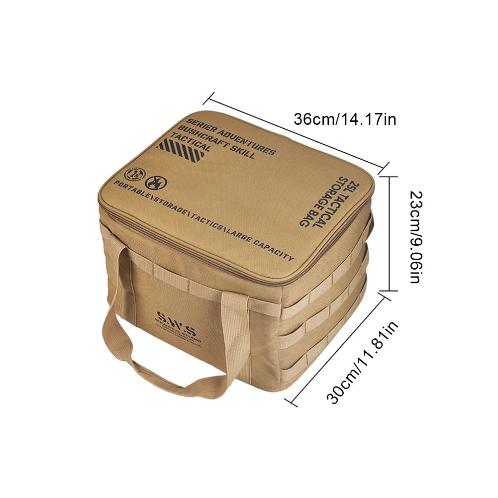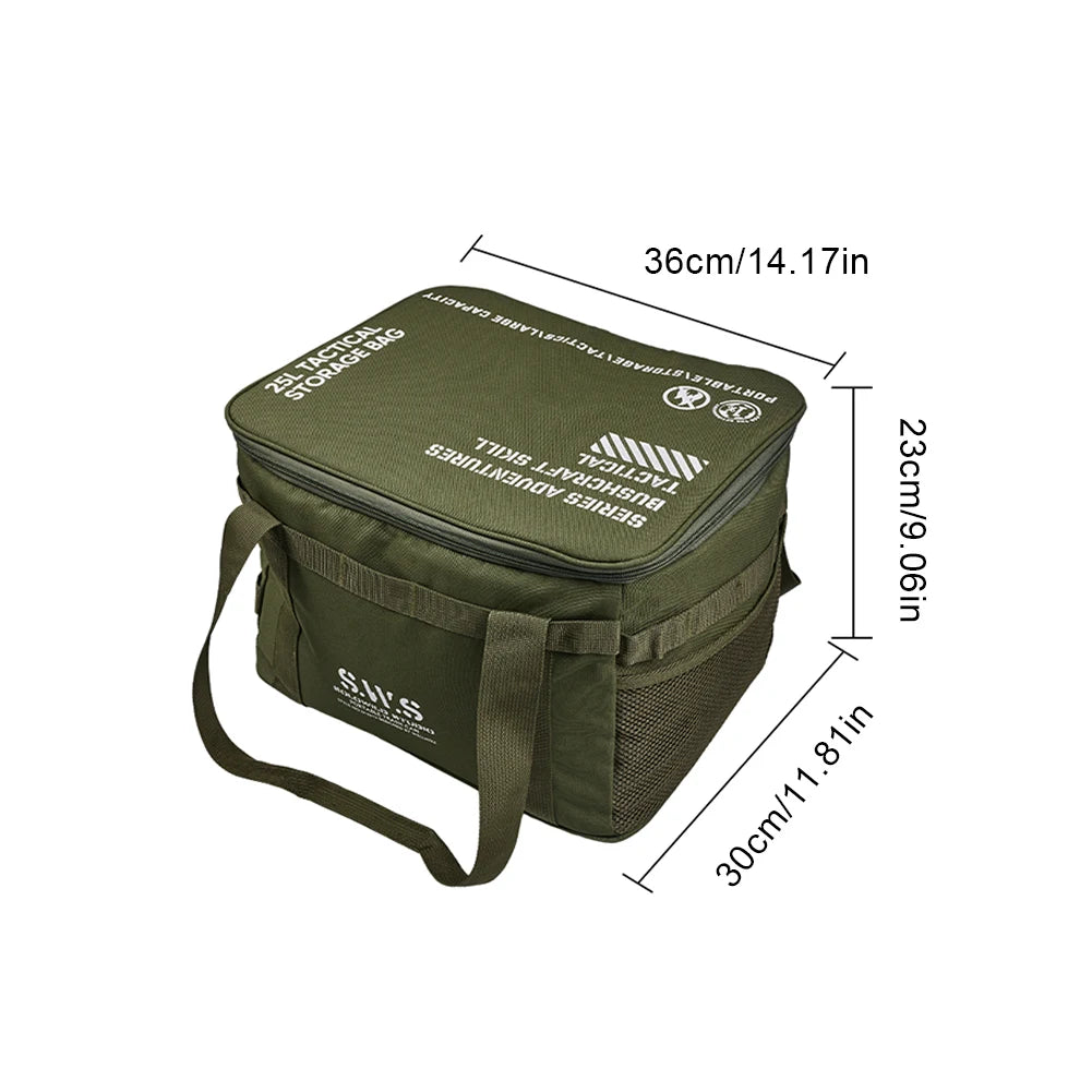 Η Σακούλα Αποθήκευσης Υγραερίου 20L για Κάμπινγκ και Πικνίκ είναι ένας ανθεκτικός, ευέλικτος οργανωτής σχεδιασμένος να μεταφέρει φιάλες αερίου, σόμπες, φώτα κάμπινγκ και άλλον απαραίτητο εξοπλισμό κάμπινγκ σε μία συμπαγή σακούλα. Με γενναιόδωρη χωρητικότητα 20L, ρυθμιζόμενους διαχωριστές και αδιάβροχη εσωτερική επένδυση, κρατά τον εξοπλισμό σας στεγνό, οργανωμένο και έτοιμο για υπαίθριες περιπέτειες. Κατασκευασμένη για αντοχή, αυτή η σακούλα αποθήκευσης χρησιμοποιεί ένα ανθεκτικό εξωτερικό ύφασμα με κρυπτογραφημένη αδιάβροχη επικάλυψη PU 900D και μια επένδυση από αδιάβροχο πλέγμα. Η κατασκευή της από πολυεστέρα εξασφαλίζει μακροχρόνια απόδοση σε όλες τις καιρικές συνθήκες, ενώ το κομψό εκτυπωμένο σχέδιο προσθέτει μια πινελιά στυλ στον εξοπλισμό κάμπινγκ σας. Η σακούλα είναι διαθέσιμη σε Μαύρο, Χακί και Πράσινο για να ταιριάζει με την υπαίθρια ατμόσφαιρα σας.