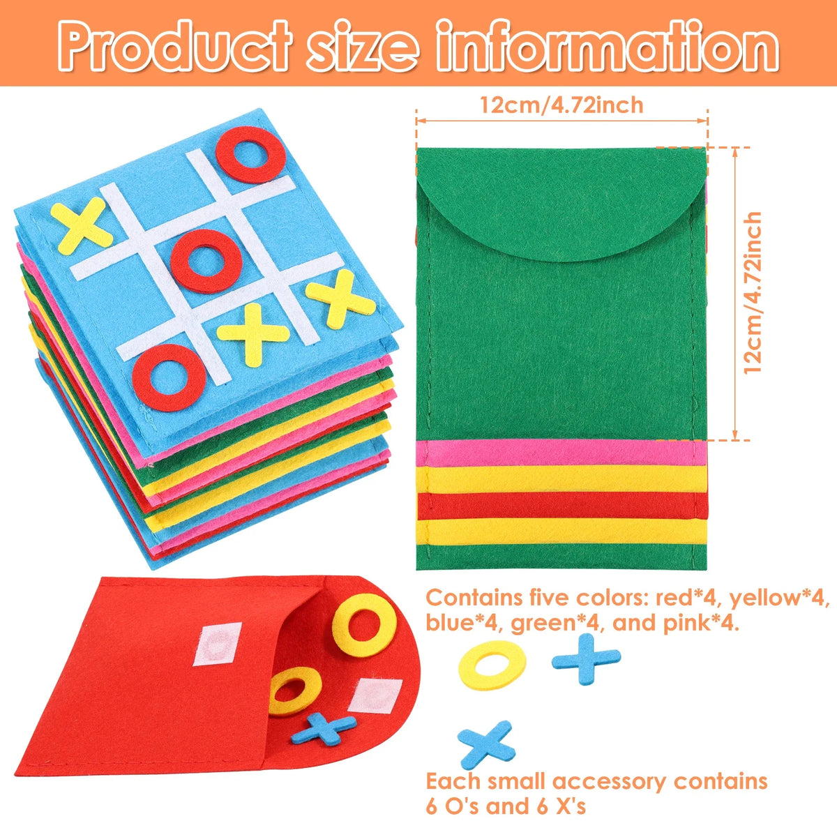 Ζήστε τη διασκεδαστική μάθηση με το Σετ Παιχνιδιού με Χρωματιστό Τσόχα, ένα οικογενειακό παιχνίδι 20 τεμαχίων κατασκευασμένο από υψηλής ποιότητας τσόχα. Κάθε συμπαγής πίνακας έχει διαστάσεις 12 × 12 εκ και διαθέτει ζωντανά χρώματα—κόκκινο, ρόδινο κόκκινο, μπλε, κίτρινο και πράσινο—σχεδιασμένα να μαγνητίζουν παιδιά και ενήλικες. Η ανεξάρτητη συσκευασία και η ενσωματωμένη τσέπη αποθήκευσης το καθιστούν ιδανικό για ταξίδια, συγκεντρώσεις και αυθόρμητο παιχνίδι, βοηθώντας τα παιδιά να αναπτύξουν λογική σκέψη και συγκέντρωση ενώ προσφέρει έναν ευχάριστο τρόπο σύνδεσης με την οικογένεια.
