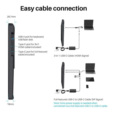 - Θύρα βίντεο: Σημείωση σύνδεσης USB-C ισχύει (η θύρα USB-C πρέπει να υποστηρίζει USB 3.1 Gen1 DP1.2 ή νεότερη για USB-C σε USB-C)