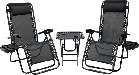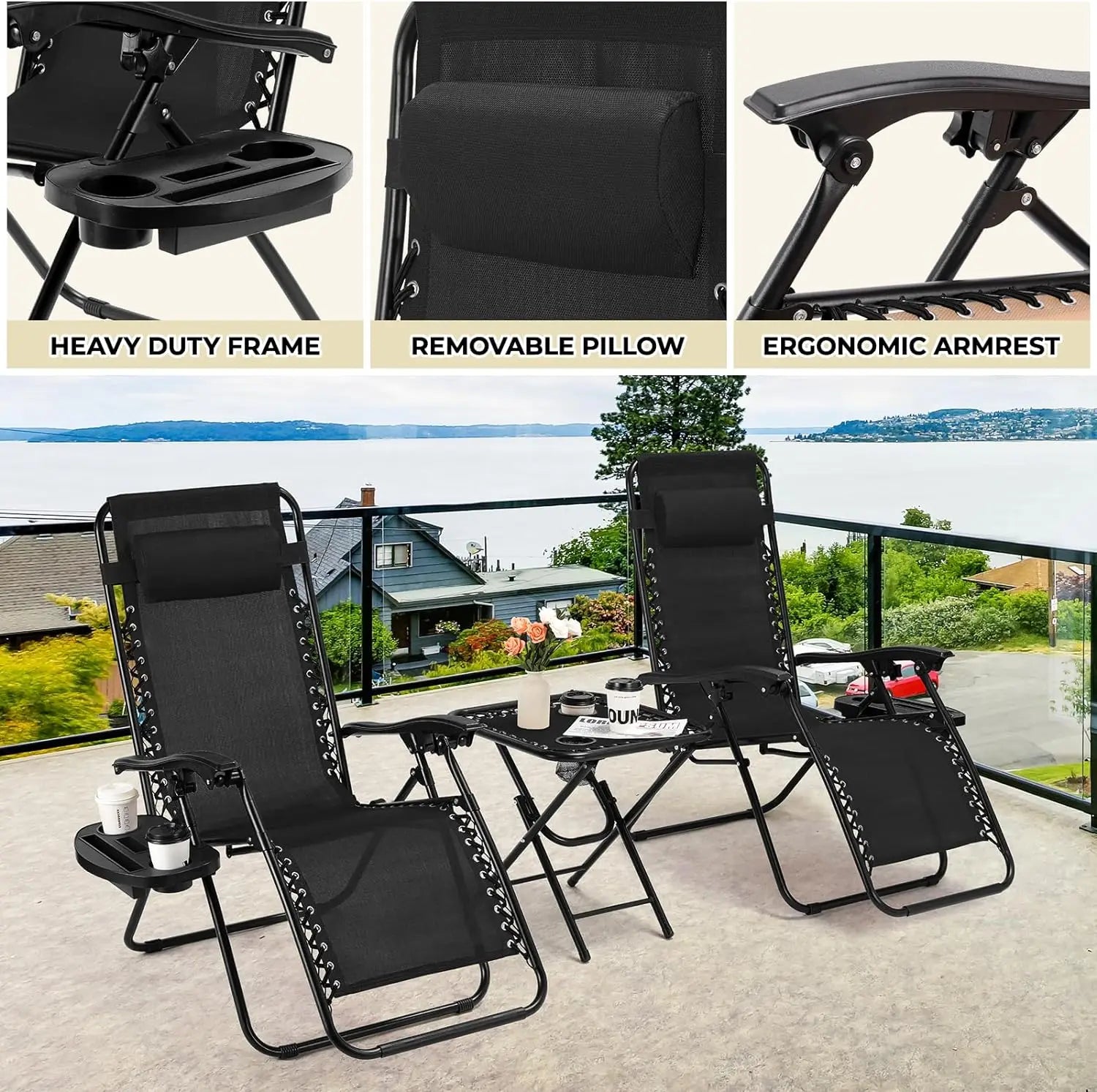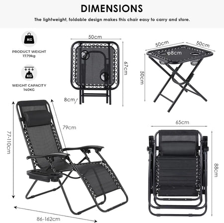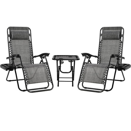 Σετ 3 τεμαχίων Ξαπλώστρας Κήπου με Τραπέζι Αναδιπλούμενο Ρυθμιζόμενο