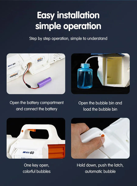 Κατασκευασμένο με πλήρως αυτόματο κινητήρα, παράγει φυσαλίδες συνεχώς χωρίς διαρροές και χρησιμοποιεί τρεις εξόδους φυσαλίδων για να δημιουργήσει πλούσιες, καταρρακτώδεις φυσαλίδες. Η συμπεριλαμβανόμενη μπαταρία λιθίου τροφοδοτεί τη συσκευή για διαρκή διασκέδαση, και το καλώδιο φόρτισης USB τη διατηρεί έτοιμη για περισσότερες περιπέτειες.