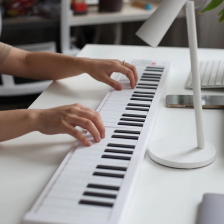 Γνωρίστε το αναδιπλούμενο ηλεκτρονικό πιάνο 61 κλειδιών από την Choice — ένα συμπαγές, ελαφρύ πληκτρολόγιο σχεδιασμένο για εξάσκηση και εμφάνιση οπουδήποτε. Όταν είναι διπλωμένο, μπαίνει σε μια τσάντα ή σακίδιο· όταν είναι ανοιχτό, έχετε ένα πλήρες πληκτρολόγιο 61 κλειδιών που έχει σχεδιαστεί για εκφραστική παιξίματα. Είναι ιδανικό για μαθητές, δασκάλους και μουσικούς εν κινήσει που χρειάζονται ένα ευέλικτο όργανο χωρίς να θυσιάζουν τον χώρο ή την φορητότητα.
