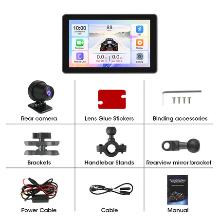 - Ανθεκτικό και προσαρμόσιμο: Προστασία αδιάβροχη IP67 για την οθόνη και τις κάμερες με καθολική βάση για ευέλικτη εγκατάσταση σε διάφορα μοντέλα μοτοσυκλετών.