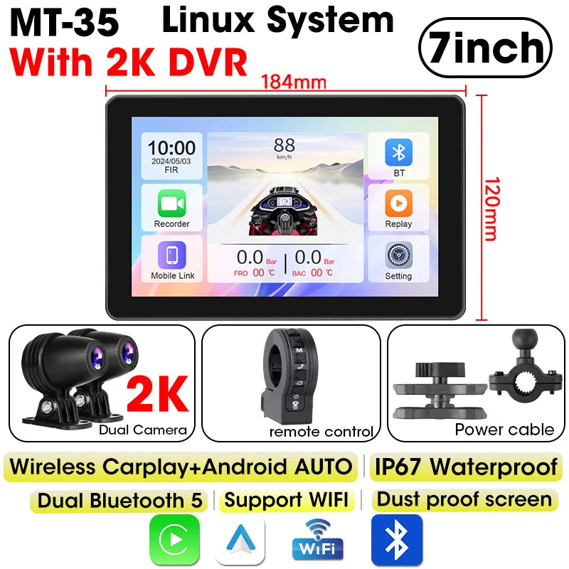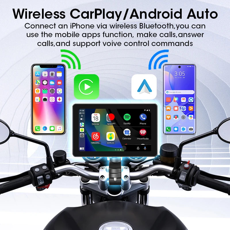 7 ιντσών 2K DVR οθόνη μοτοσικλέτας με ασύρματο CarPlay Android Auto αποσπώμενη οθόνη διπλό Bluetooth αδιάβροχο IP67