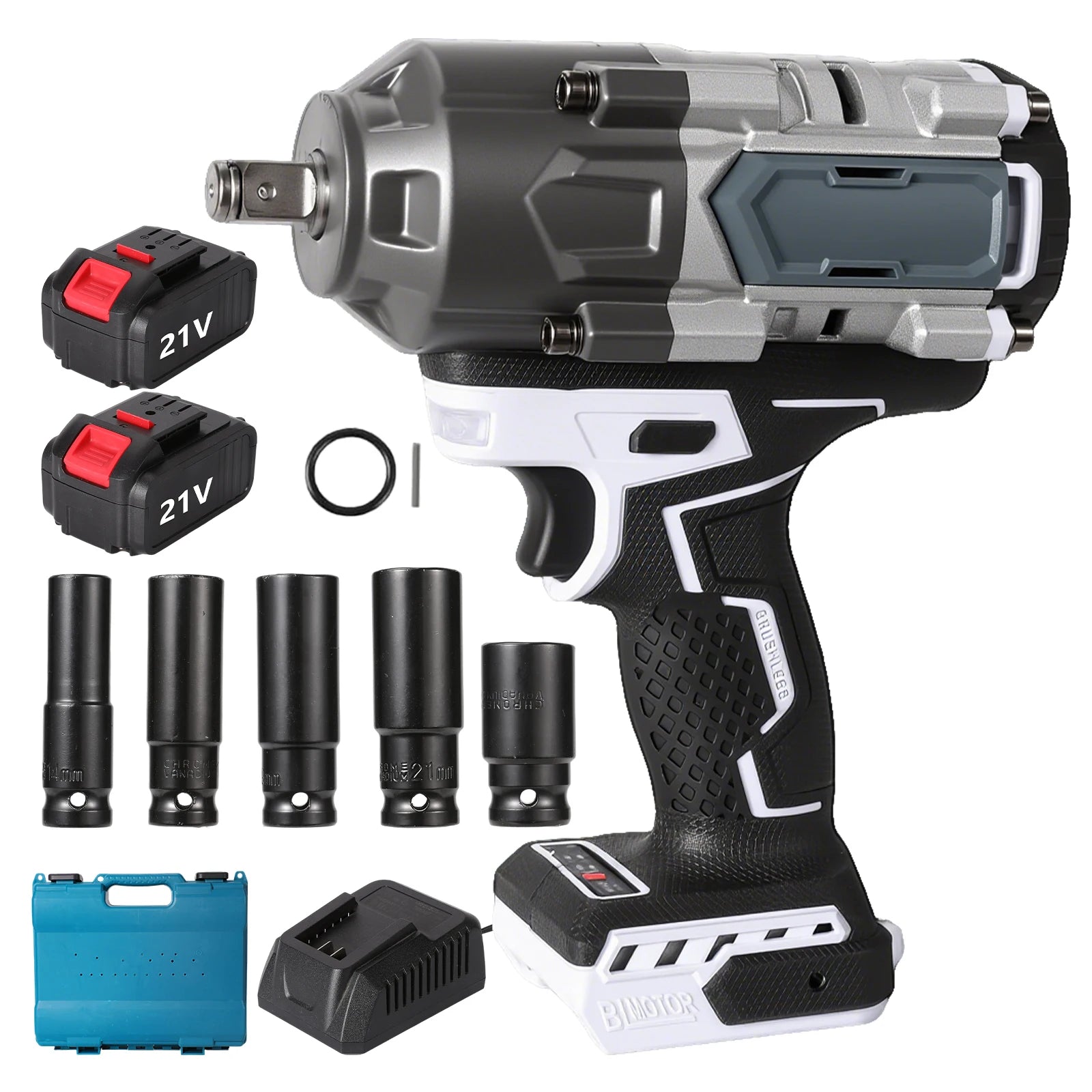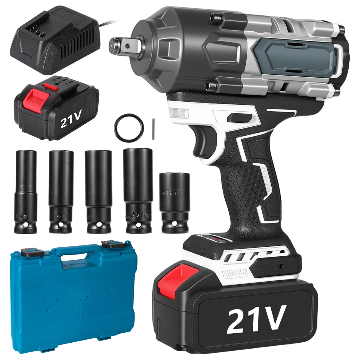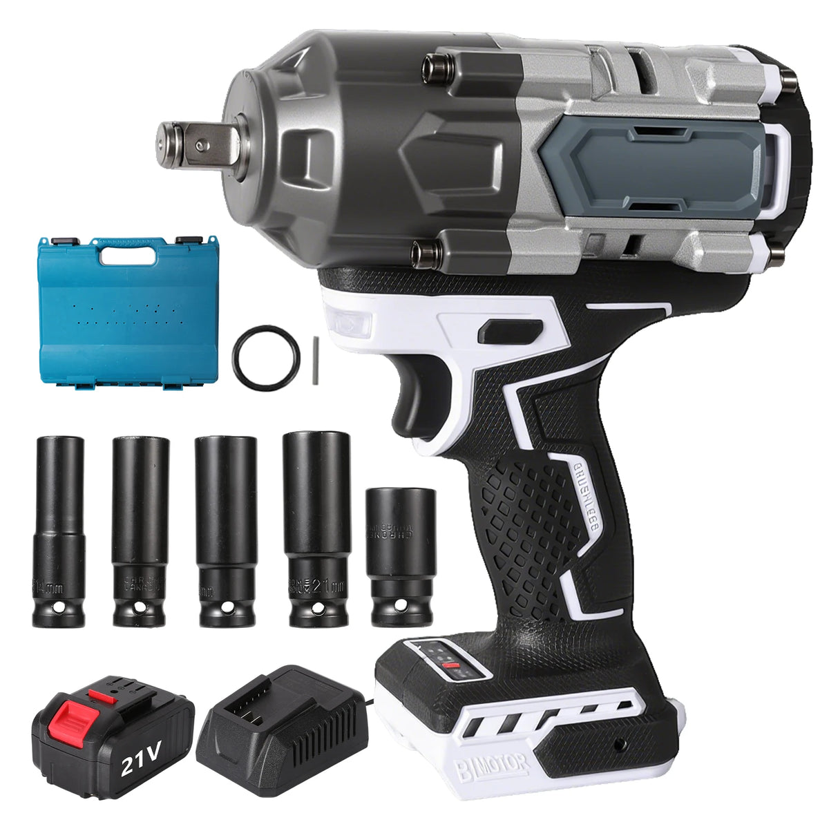 - 1 x 21V Ασύρματο Χωρίς Ψήκτρες Κλειδί Πρόσκρουσης (1/2" υποδοχή)