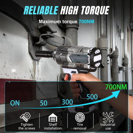 - Πολυλειτουργική ροπή: Ασφαλώς αναλάβετε αυτοκινητιστικές εργασίες, κατασκευαστικούς συνδετήρες και βίδες βαρέως εξοπλισμού με έως 700 Nm ροπής.