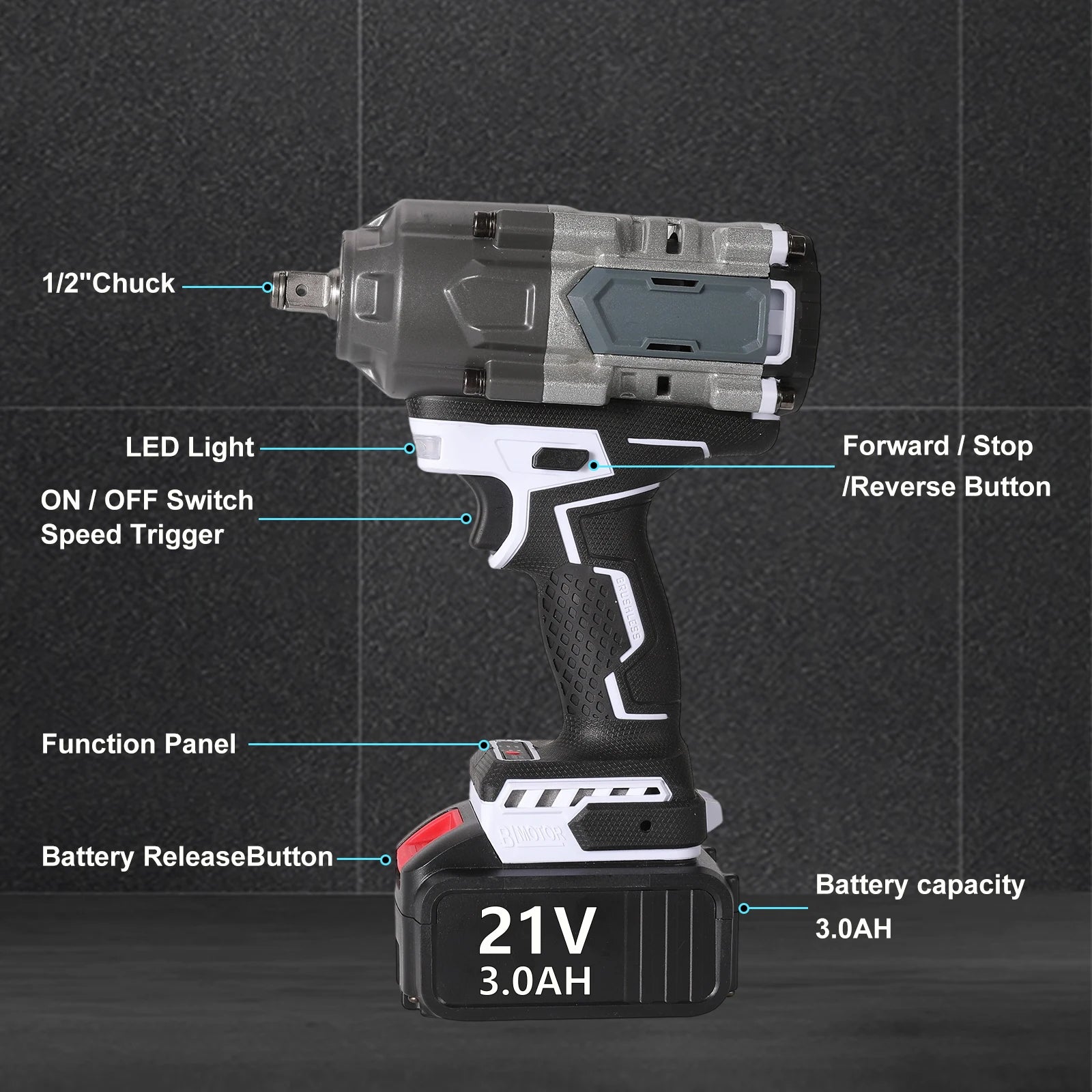 - Μοντέλο: 700Nm Ασύρματο Χωρίς Ψήκτρες Κλειδί Πρόσκρουσης 21V Μισή Ίντσα
