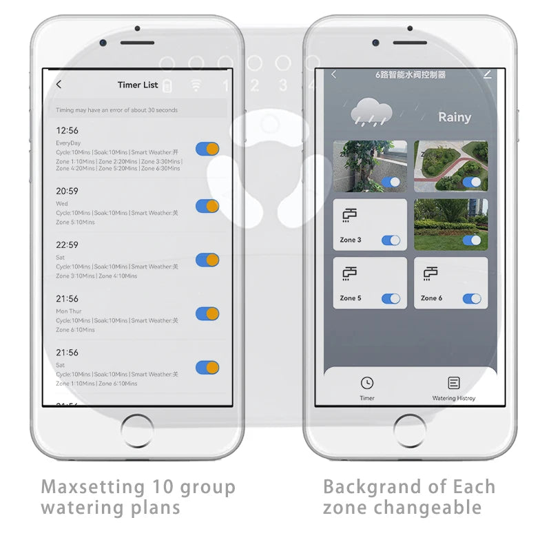 - Προσαρμόσιμα Προγράμματα Ποτίσματος: Δημιουργήστε έως και 10 μοναδικά προγράμματα ποτίσματος, κάθε ένα με τη δυνατότητα να καθορίσετε ζώνες, ώρες έναρξης και διάρκειες. Εξασφαλίστε ότι κάθε φυτό λαμβάνει την τέλεια ποσότητα νερού.