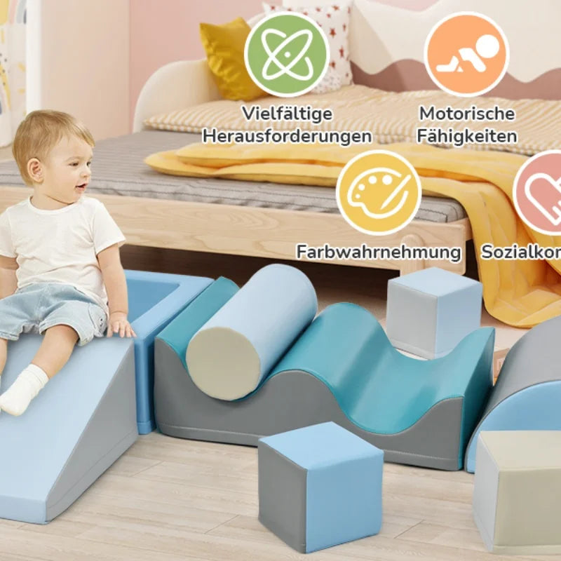 Το Σετ Εκπαιδευτικών Παιχνιδιών 9 Τεμαχίων για Βρεφικές Κινητικές Δεξιότητες από αφρό πολυουρεθάνης (PU) είναι ένα πολυλειτουργικό σετ μαλακών τουβλών σχεδιασμένο να ενισχύει τις αδρές κινητικές δεξιότητες σε νήπια και παιδιά προσχολικής ηλικίας. Κατασκευασμένα από υψηλής ποιότητας αφρό πολυουρεθάνης (PU) και EPE, αυτά τα τουβλάκια είναι ελαφριά, ανθεκτικά και πιστοποιημένα με EN71 για ασφάλεια. Τα τουβλάκια σε παστέλ χρώματα δημιουργούν ένα ήρεμο, φιλόξενο περιβάλλον παιχνιδιού προσφέροντας παράλληλα πολυλειτουργική διασκέδαση που εξελίσσεται μαζί με το παιδί σας.