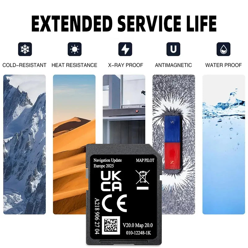 A218 V20 Δορυφορικός Χάρτης Ενημέρωσης 2025 SD Κάρτα - Έτοιμο για Mercedes — Μια έτοιμη προς εγκατάσταση 32GB SD κάρτα προφορτωμένη με τον χάρτη πλοήγησης V20 2025 για τα συστήματα Mercedes A218, σχεδιασμένη για γρήγορη ανάγνωση/εγγραφή και απρόσκοπτη ενσωμάτωση με συμβατές μονάδες πλοήγησης αυτοκινήτου.