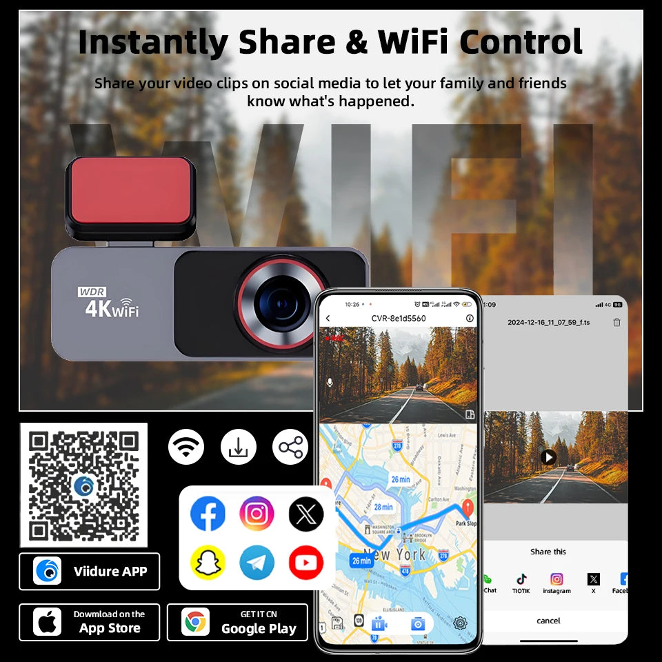 - Διπλή διάταξη φακών: μπροστινή 4K + πίσω 1080P για πλήρη κάλυψη δρόμου