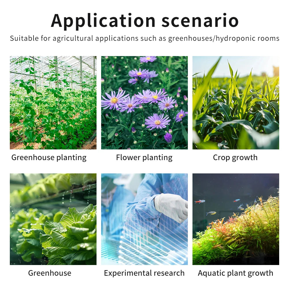 - Μετράει PAR και PPFD για να βοηθήσει στη βελτιστοποίηση της τοποθέτησης και της έντασης του φωτός καλλιέργειας