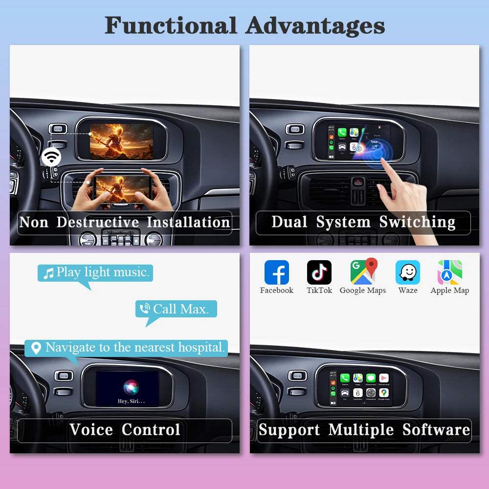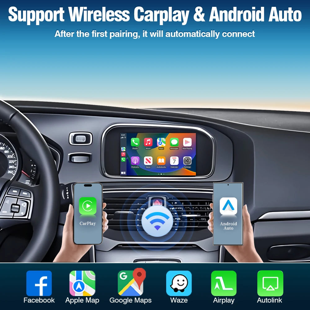 Αναβαθμίστε το Volvo σας με τη μονάδα πολυμέσων AUTOTOP Wireless CarPlay Android Auto, σχεδιασμένη για τα μοντέλα S60 και XC60. Αυτό το ασύρματο σύστημα ψυχαγωγίας αυτοκινήτου προσφέρει απρόσκοπτη ενσωμάτωση CarPlay και Android Auto στο ταμπλό σας, επιτρέποντάς σας να έχετε πρόσβαση σε πλοήγηση, μηνύματα, μουσική και εφαρμογές απευθείας από το τηλέφωνό σας χωρίς μπερδεμένα καλώδια. Κατασκευασμένο για οχήματα Volvo όπως S60, XC60, V60 και V40, αντικαθιστά την εργοστασιακή ψυχαγωγία για να προσφέρει μια σύγχρονη, φιλική προς το smartphone εμπειρία με καθαρές εσωτερικές αισθητικές. Απολαύστε γρήγορη ασύρματη σύνδεση, ευαίσθητο έλεγχο αφής και αξιόπιστη απόδοση που σας βοηθά να παραμένετε συγκεντρωμένοι στο δρόμο. Μετατρέψτε κάθε διαδρομή σε ασφαλέστερα, πιο ευχάριστα ταξίδια με δυνατότητες πρόσβασης χωρίς χέρια και φωνητικού ελέγχου.