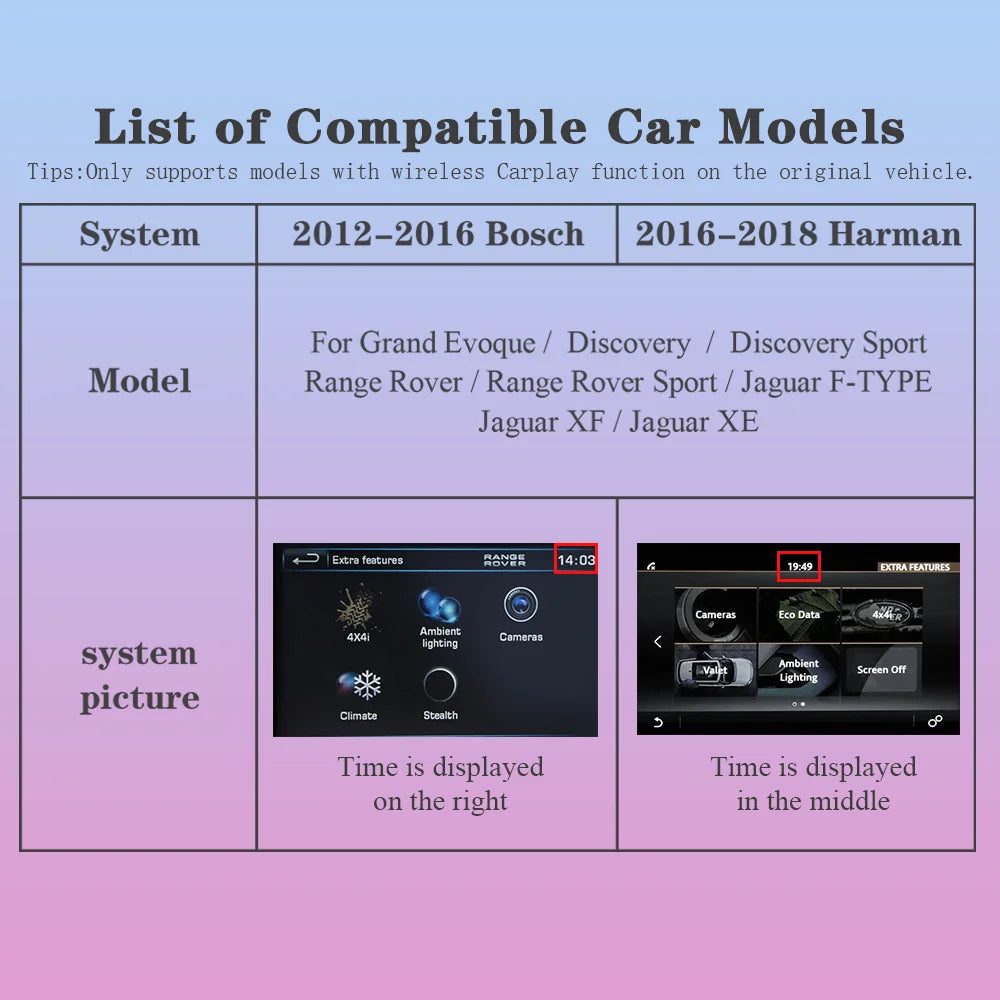 - Μοντέλο: Wireless CarPlay Android Auto Αναβάθμιση για LR Evoque