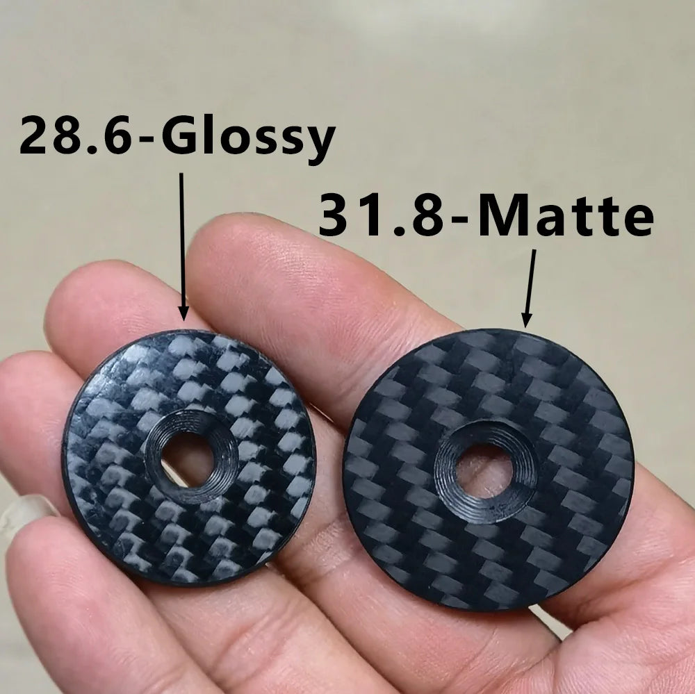 Το καπάκι είναι κατασκευασμένο από υψηλής ποιότητας ανθρακονήματα για αντοχή χωρίς περιττό βάρος, ενώ η βίδα χρησιμοποιεί κράμα τιτανίου για ανώτερη ανθεκτικότητα και εύκολη εφαρμογή. Ο σχεδιασμός παρέχει μια καθαρή, σταθερή επιφάνεια προφόρτισης και μια μοντέρνα εμφάνιση που συμπληρώνει κάθε ρύθμιση ποδηλάτου. Επιλέξτε ανάμεσα σε μεγέθη καπακιού 28,6mm και 31,8mm για να ταιριάξετε με τη διαμόρφωση του σετ κεφαλής σας και να εξασφαλίσετε μια στενή, ασφαλή εφαρμογή.