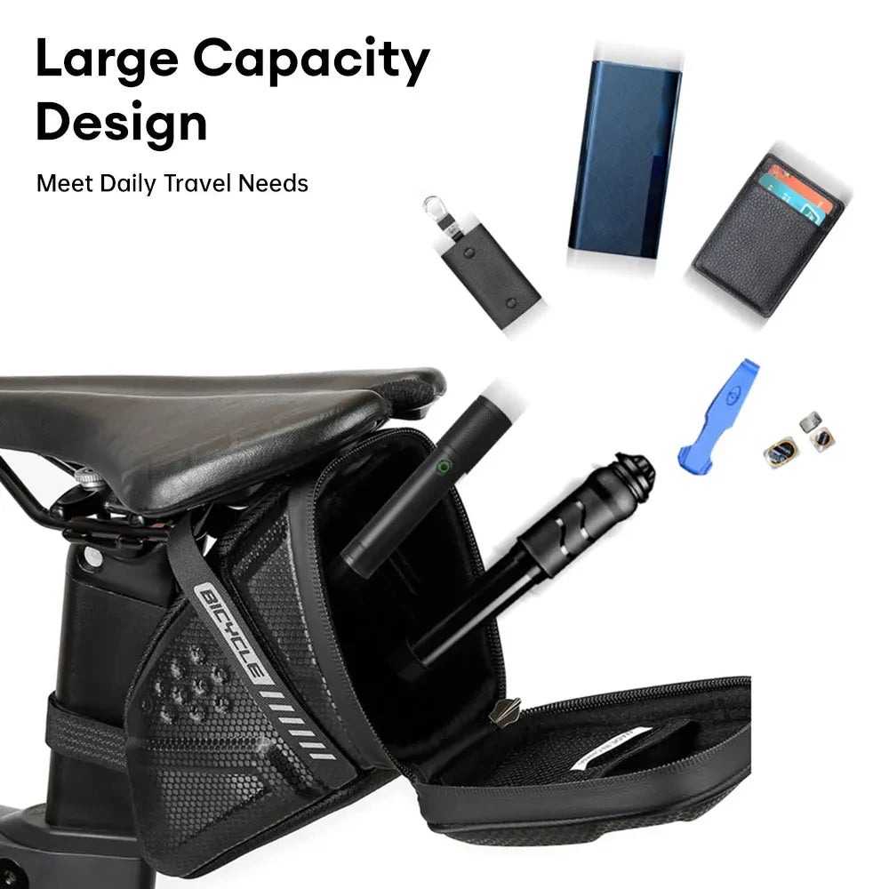 Αδιάβροχη Τσάντα Σέλας Ποδηλάτου 1L, Μαύρο, Ανακλαστική, Πολυλειτουργική Αποθήκευση Εργαλείων