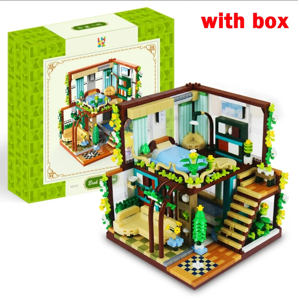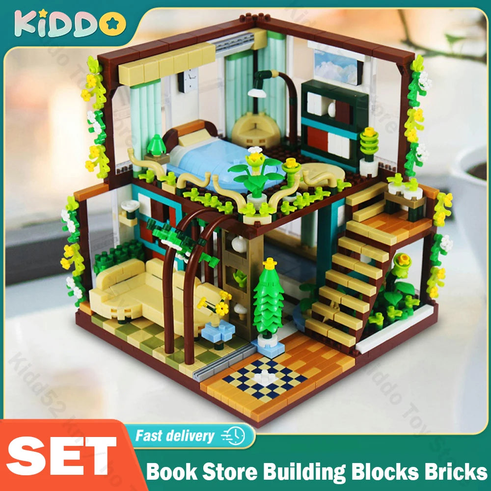 Τουβλάκια Κατασκευής Βιβλιοπωλείου Ήσυχο Βιβλίο Παιχνίδι Αστικό Τοπίο για Κορίτσια Πλαστικά Τουβλάκια