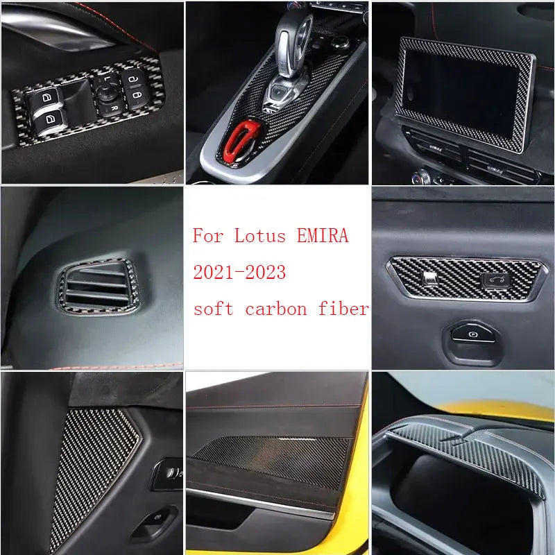 - Βελτιώνει την αισθητική του εσωτερικού με ένα κομψό ανθρακονημάτινο στοιχείο που συμπληρώνει το σχεδιασμό του Lotus EMIRA.