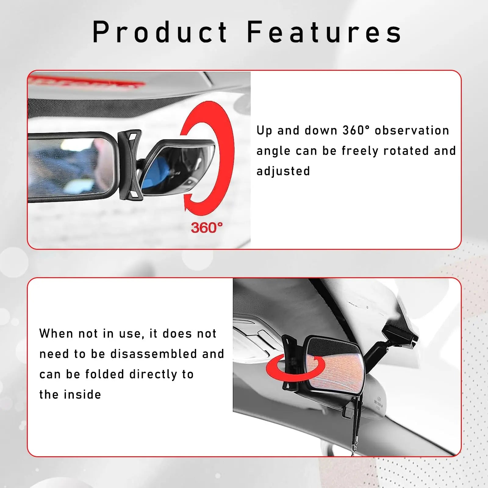 - Ρυθμιζόμενος 360° - Ρυθμίστε εύκολα τον καθρέφτη στην τέλεια γωνία για πλήρη θέαση του πίσω καθίσματος.