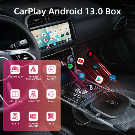 CarPlay AI Box Android 13 με 8-Πυρήνα QCM6115, Ασύρματο CarPlay, Android Auto