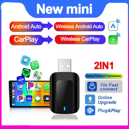 Αυτός ο συμπαγής προσαρμογέας παρέχει ασύρματο CarPlay και ασύρματο Android Auto μετατρέποντας τα ενσωματωμένα συστήματα σε ασύρματη λειτουργία. Υποστηρίζει τη Siri για έλεγχο χωρίς χέρια, τον Google Assistant για ερωτήσεις εν κινήσει και GPS πλοήγηση για αξιόπιστη καθοδήγηση. Με μια σταθερή σύνδεση WiFi 5.8GHz, έχετε ομαλή αναπαραγωγή οθόνης και γρήγορες επανασυνδέσεις, ώστε να παραμένετε συγκεντρωμένοι στο δρόμο. Η ρύθμιση plug-and-play σημαίνει ότι απλά εισάγετε τη συσκευή στη θύρα USB του αυτοκινήτου με μετάδοση δεδομένων, αναζητάτε το όνομα Bluetooth στο τηλέφωνό σας και εγκρίνετε τα αιτήματα — χωρίς περίπλοκες συνδέσεις.