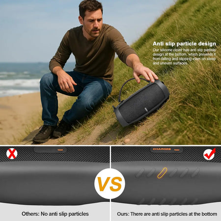 Κρατήστε το JBL Charge 6 σας προστατευμένο και έτοιμο για οπουδήποτε σας πάει η ζωή με αυτή τη στενή, αδιάβροχη θήκη από σιλικόνη. Κατασκευασμένη από μαλακή, ανθεκτική σιλικόνη, αυτή η ελαφριά θήκη αγκαλιάζει το ηχείο, αντιστέκεται στις γρατζουνιές και παρέχει σταθερό κράτημα εν κινήσει. Ο σχεδιασμός σας δίνει εύκολη πρόσβαση σε όλους τους ελέγχους μέσω της επιφάνειας και περιλαμβάνει ένα ανθεκτικό λουράκι με κλιπ για μεταφορά χωρίς χρήση χεριών. Είτε μετακινείστε, κάνετε κάμπινγκ, είτε απολαμβάνετε μια μέρα στην παραλία, αυτή η θήκη βοηθά να προστατεύσετε το Charge 6 από χτυπήματα, υγρασία και καθημερινή φθορά χωρίς να προσθέτει όγκο.
