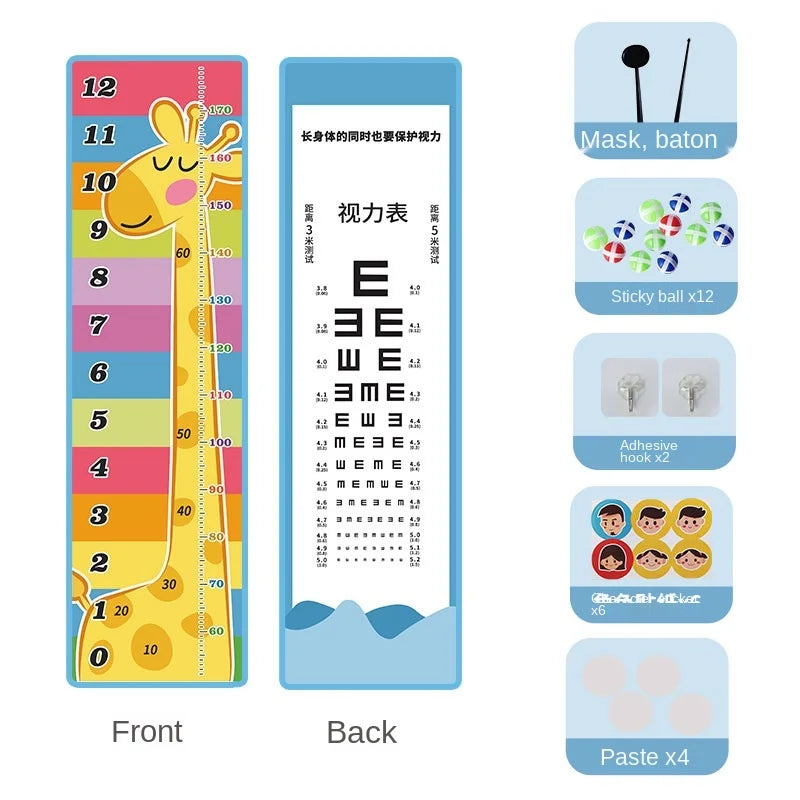 Γνωρίστε το Παιχνίδι Μεγέθυνσης με Πίνακα Οφθαλμολογίας Montessori, ένα πολυλειτουργικό παιχνίδι 3 σε 1 σχεδιασμένο για παιδιά ηλικίας 2 έως 6 ετών. Αυτό το σετ παιχνιδιού για εσωτερικούς και εξωτερικούς χώρους συνδυάζει έναν πίνακα ανάπτυξης με έναν χάρακα εμπνευσμένο από πίνακα οφθαλμολογίας και ένα παιχνίδι ρίψης με μπάλα, μετατρέποντας τη μάθηση σε διαδραστική διασκέδαση. Κατασκευασμένο από μαλακό ύφασμα, είναι απαλό για τα μικρά χέρια και έτοιμο για ενεργό παιχνίδι στο σπίτι, στην τάξη ή έξω.