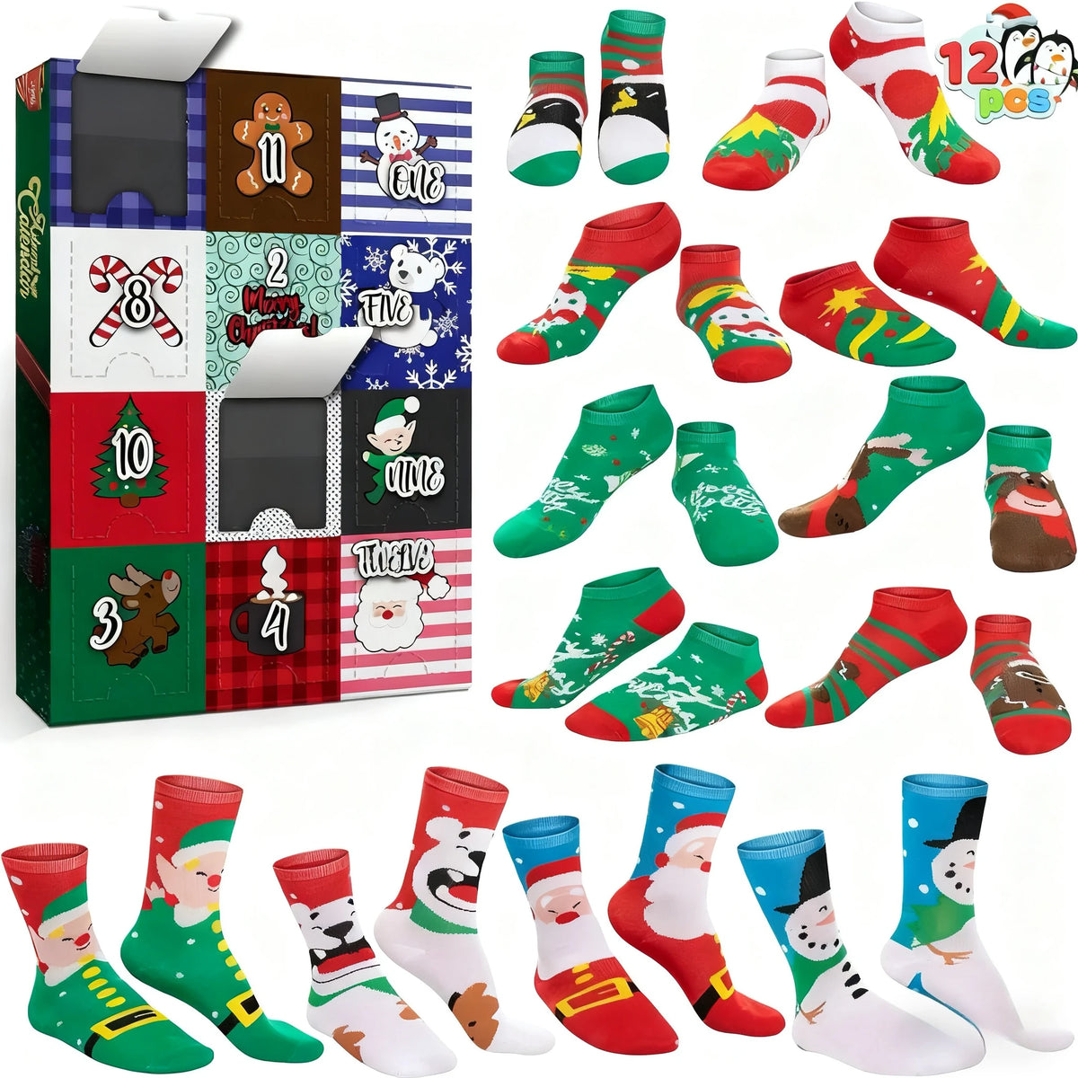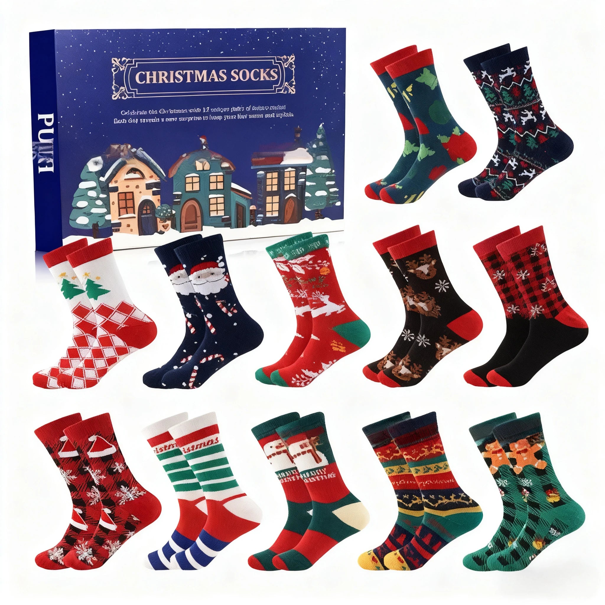 Ημερολόγιο Αντίστροφης Μέτρησης Χριστουγέννων με 24 Ζευγάρια Κάλτσες, Σετ Δώρου Χριστουγεννιάτικες Κάλτσες Μέσης Μήκους από Βαμβάκι