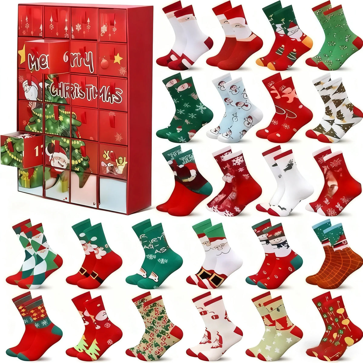 Ημερολόγιο Αντίστροφης Μέτρησης Χριστουγέννων με 24 Ζεύγη Κάλτσες, Μεσαίου Μήκους Βαμβακερές Χριστουγεννιάτικες Κάλτσες Σετ Δώρου