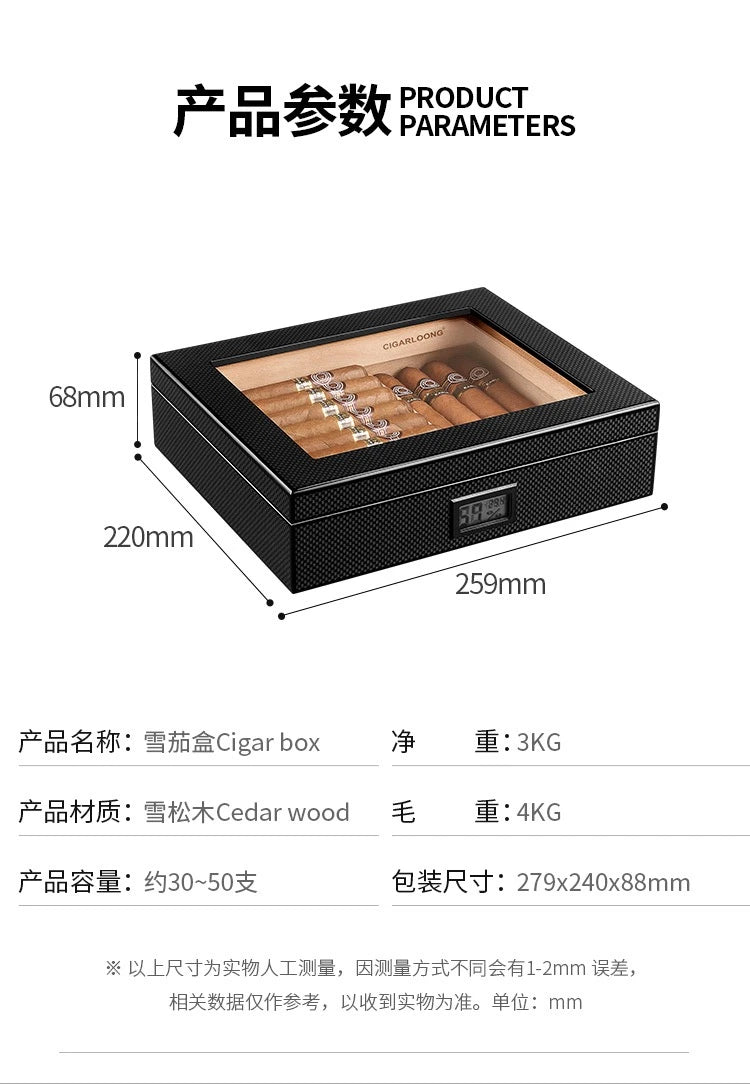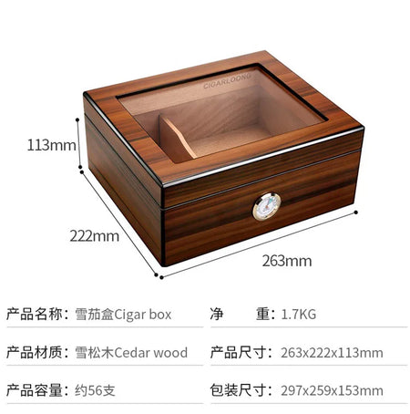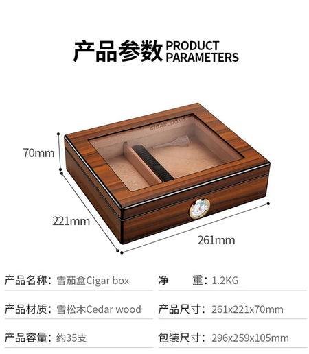 Κουτί Υγραντήρας Πούρων από Ξύλο Κέδρου με Μεγάλο Παράθυρο και Φινίρισμα Πιάνο