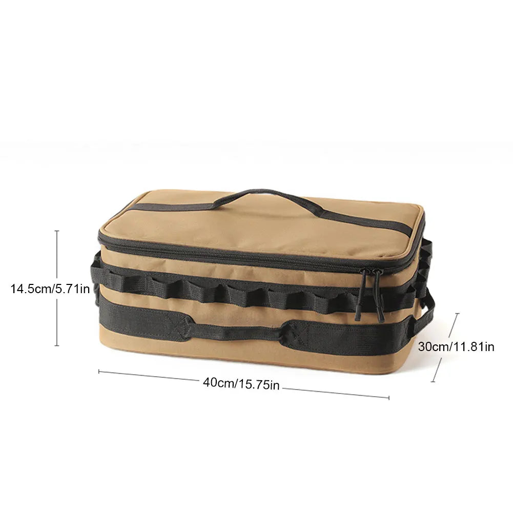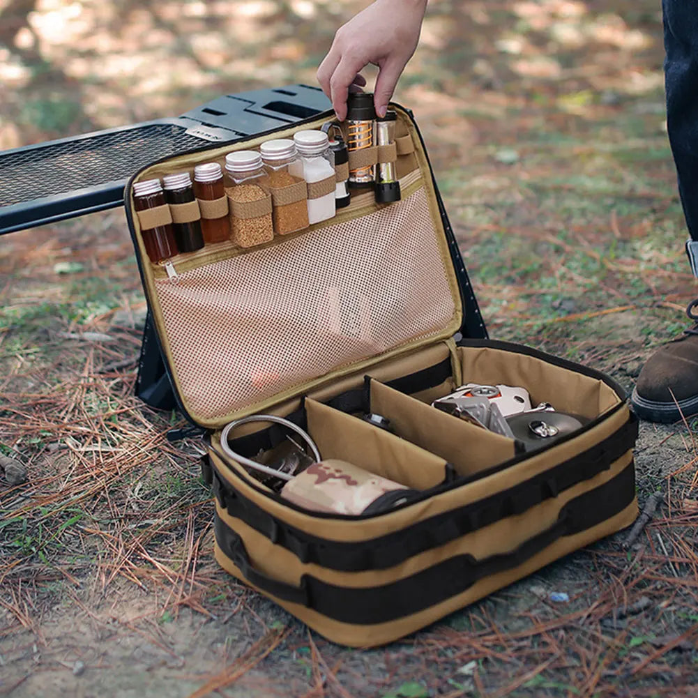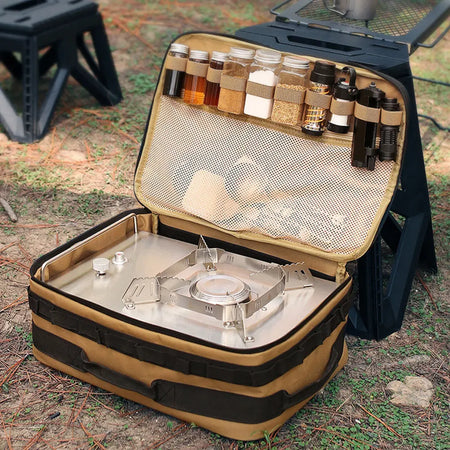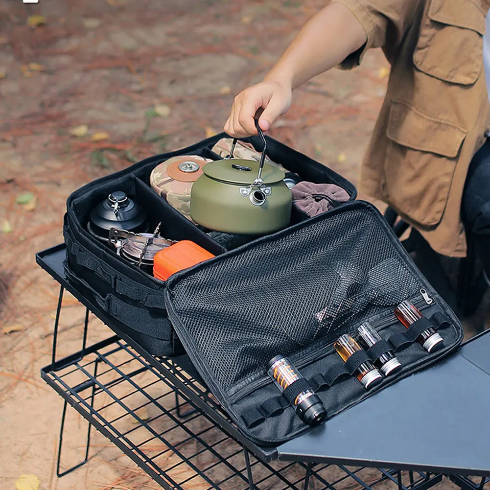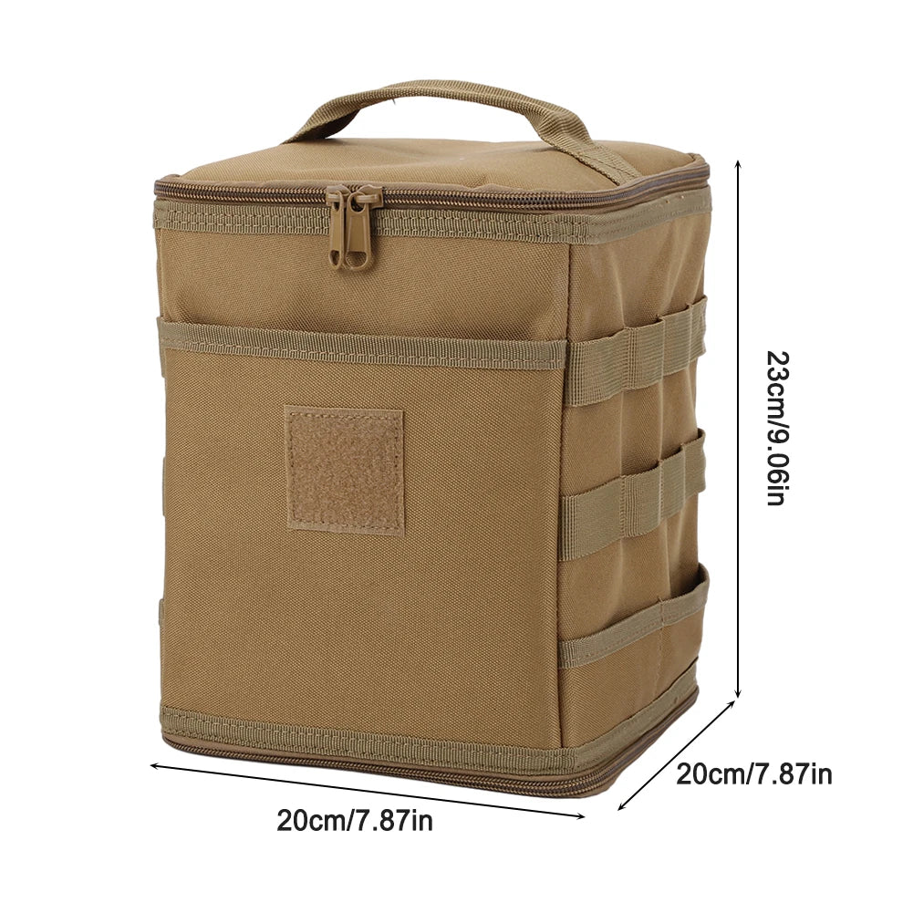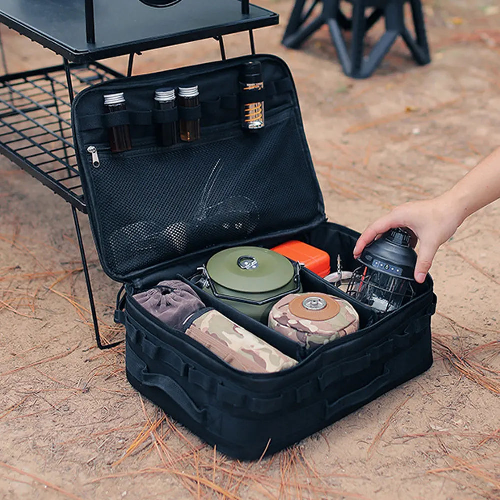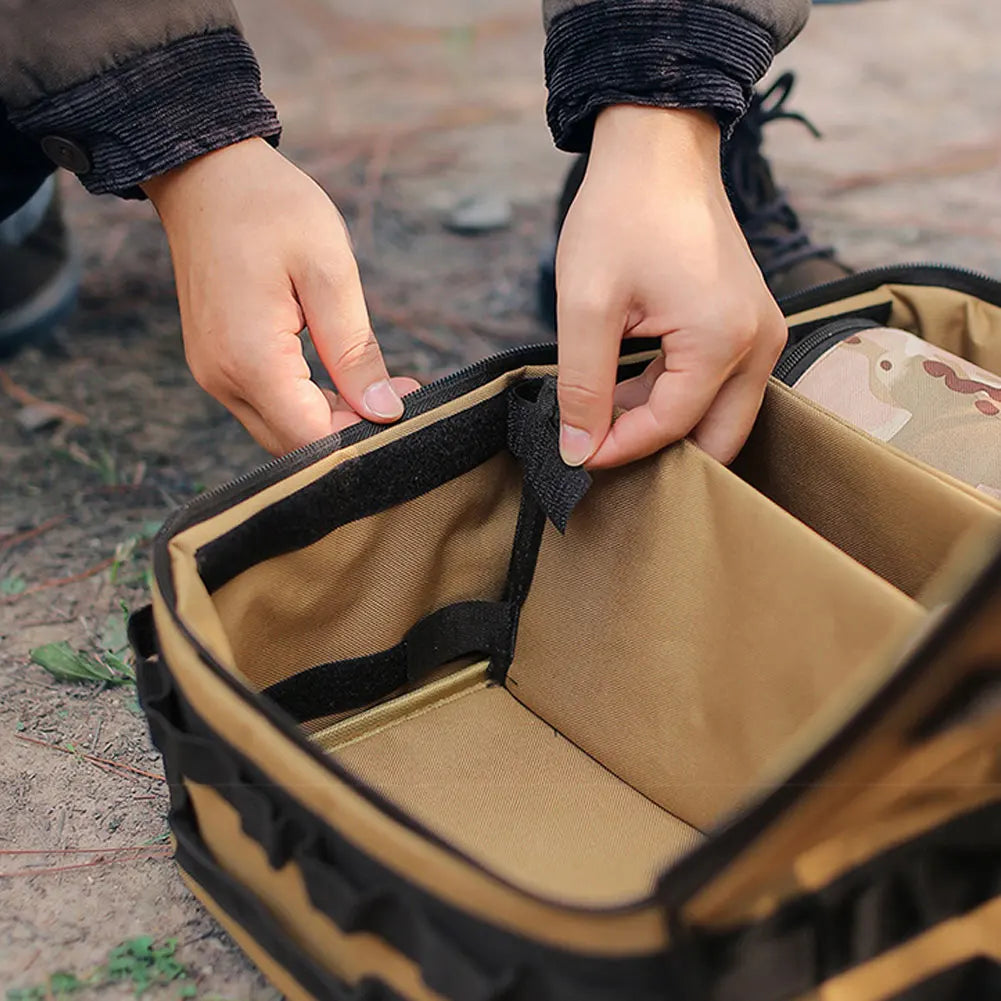 Γνωρίστε την 15L Τακτική Τσάντα Αποθήκευσης Κατασκήνωσης, έναν οργανωτή μεγάλης χωρητικότητας και ανθεκτικό, κατασκευασμένο για σκληρές εξωτερικές μαγειρικές και εξοπλισμούς. Κατασκευασμένο με νάιλον εξωτερικό και ενισχυμένες άκρες, έχει σχεδιαστεί για να κρατάει εστίες IGT, φιάλες αερίου, σκεύη και άλλα. Η γενναιόδωρη χωρητικότητα 15L της τσάντας, μαζί με μια ευέλικτη διάταξη, σας βοηθά να κρατάτε όλα όσα χρειάζεστε σε εύκολη πρόσβαση ενώ κατασκηνώνετε, σκαρφαλώνετε ή απολαμβάνετε ένα πικνίκ. Μέσα και έξω, αυτή η τακτική τσάντα είναι σχεδιασμένη για πρακτικότητα και προστασία. Ο ευρύχωρος εσωτερικός χώρος συμπληρώνεται από μια ενσωματωμένη τσέπη με φερμουάρ για να κρατάτε μικρότερα αντικείμενα τακτοποιημένα. Με 30 εξωτερικές και εσωτερικές λωρίδες, μπορείτε να ασφαλίσετε φανούς, μπουκάλια μπαχαρικών και άλλα μικρά αξεσουάρ. Το διαχωριστικό με μαγνητική ταινία επιτρέπει ευέλικτες ρυθμίσεις διάταξης, παρέχοντας προσαρμοσμένες επιλογές αποθήκευσης. Η επένδυση από βαμβάκι 8mm προσφέρει ανώτερη απορρόφηση κραδασμών για να προστατεύει τα υπάρχοντά σας κατά τη μεταφορά. Οι βολικές λαβές στα πλάγια και στην κορυφή εξασφαλίζουν εύκολη μεταφορά σε οποιαδήποτε κατάσταση. Ανθεκτική από σχεδίαση, η τσάντα μαγειρικής κατασκήνωσης είναι κατασκευασμένη για να αντέχει σε σκληρές εξωτερικές συνθήκες. Η στιβαρή κατασκευή και οι ενισχυμένες άκρες προσφέρουν αξιόπιστη αντοχή, ώστε ο εξοπλισμός σας να παραμένει ασφαλής είτε κάνετε πεζοπορία, κατασκήνωση ή ταξίδι. Ελαφριά και φορητή, είναι έτοιμη να σας συνοδεύσει σε αμέτρητες εξωτερικές περιπέτειες. Η εύκολη προσβασιμότητα είναι στον πυρήνα του σχεδιασμού αυτής της τσάντας. Είτε την φορτώνετε σε ένα πορτμπαγκάζ αυτοκινήτου είτε φτάνετε για εξοπλισμό σε μια σκηνή, οι καλά τοποθετημένες λαβές παρέχουν σφιχτό κράτημα για γρήγορη, χωρίς ταλαιπωρία πρόσβαση. Αυτή η τσάντα 15L είναι μια πρακτική, οργανωμένη λύση για κατασκηνωτές που χρειάζονται αξιόπιστη αποθήκευση χωρίς να προσθέτουν όγκο στο σακίδιο τους.