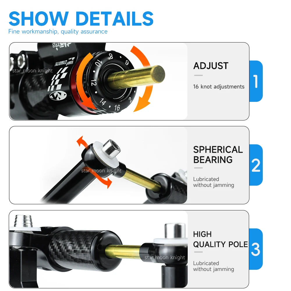 - Βελτιώστε τη σταθερότητα του τιμονιού και μειώστε την κόπωση του αναβάτη κατά τη διάρκεια μεγάλων διαδρομών ή επιθετικής στροφής.