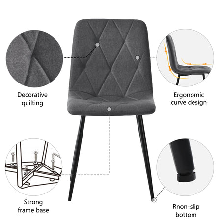 Σετ Τεσσάρων Καθισμάτων Τραπεζαρίας Με Υφασμάτινη Επένδυση Σε Σκούρο Γκρι Με Πλάτη