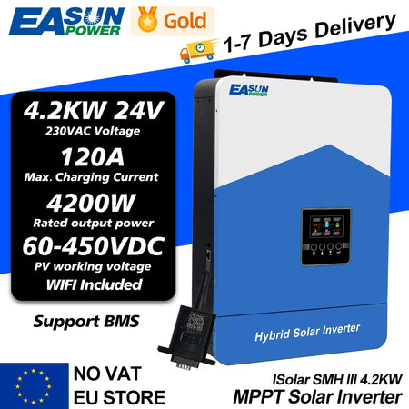 - 1 x EASUN Hybrid Solar Inverter 6.2KW 120A MPPT WiFi 230VAC