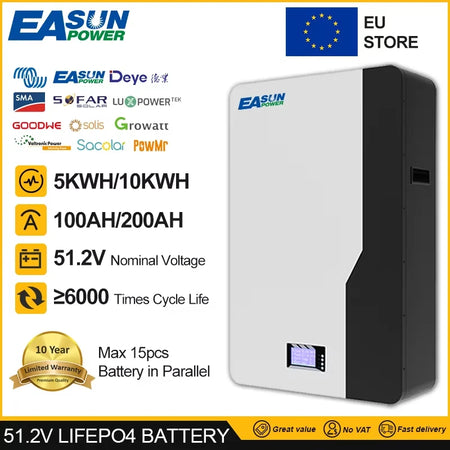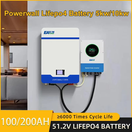Μπαταρία EASUN Lifepo4 Powerwall 48V και 51.2V, 16S 100Ah, 5.12kWh Χωρητικότητα, 6000+ Κύκλοι, BMS Έτοιμο για Ηλιακή Ενέργεια