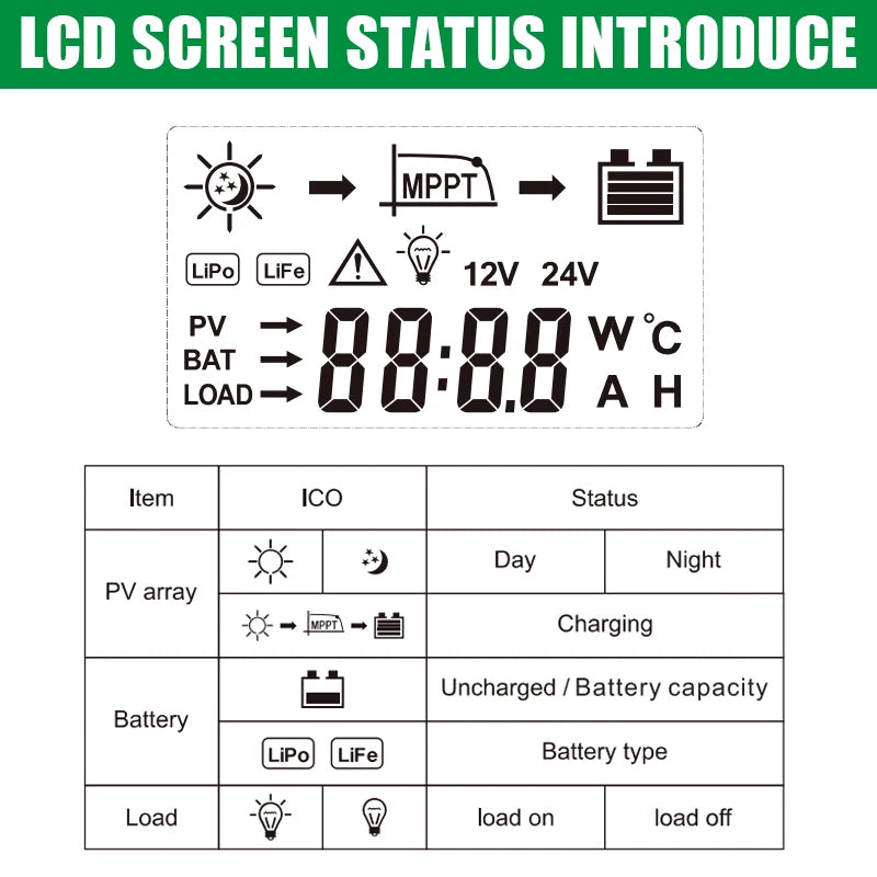 - Ονομαστική τάση συστήματος: 12/24V/48V Αυτόματη αναγνώριση