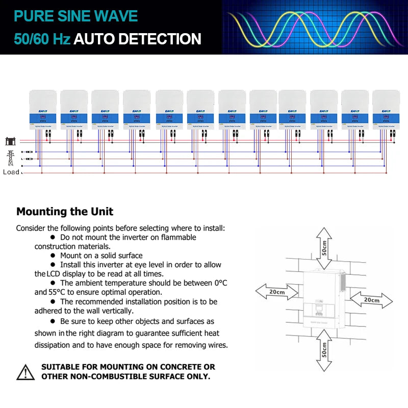 - Προστασία & Χαρακτηριστικά: Προστασία από υπερφόρτωση, υπερθέρμανση, βραχυκύκλωμα; Αυτόματη επανεκκίνηση κατά την αποκατάσταση AC; Λειτουργία ψυχρής εκκίνησης