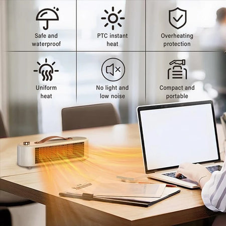 - Θερμότητα γραφείου ή κομοδίνου: τοποθετήστε το σε ένα τραπέζι για να ζεστάνετε γρήγορα τον χώρο εργασίας ή την περιοχή ύπνου.