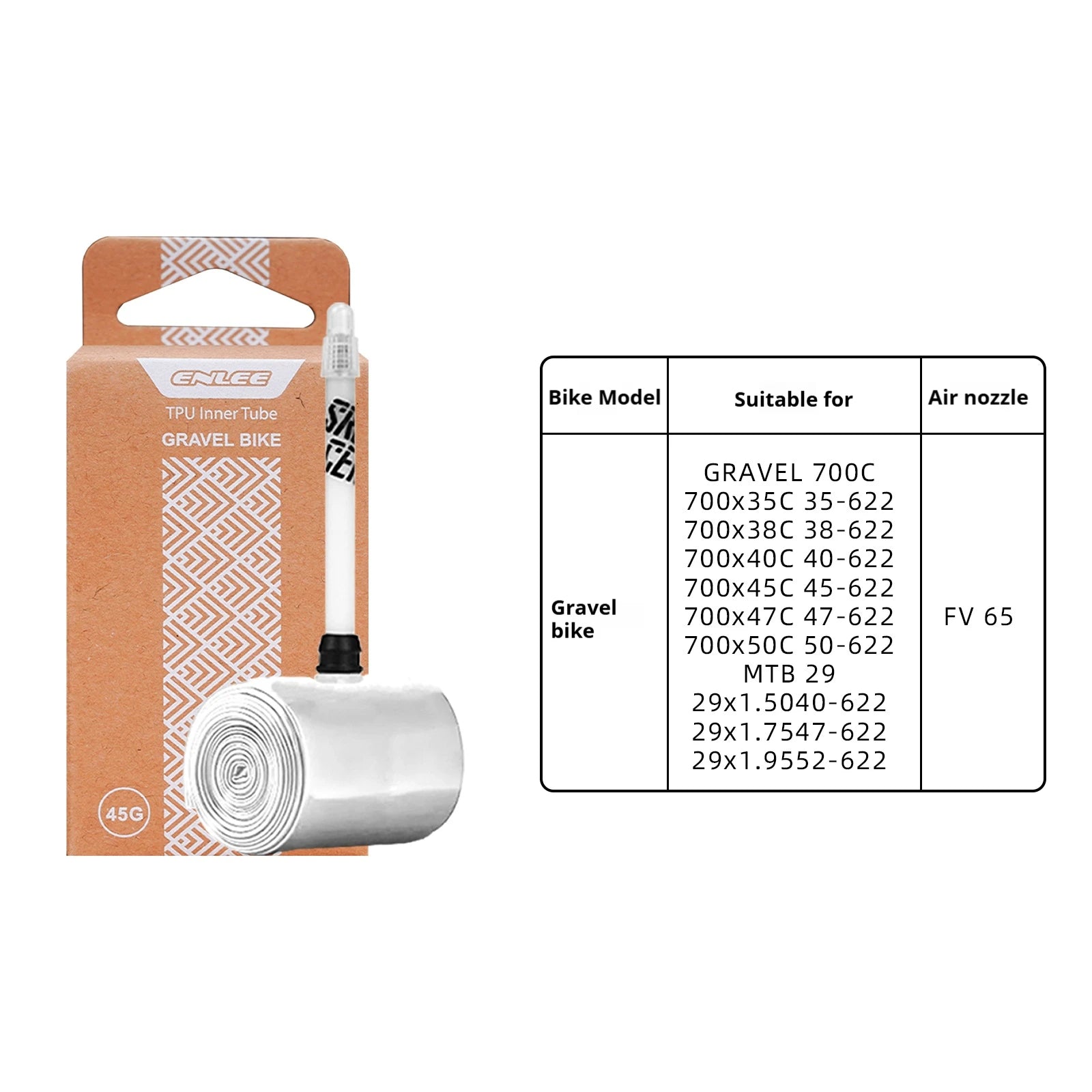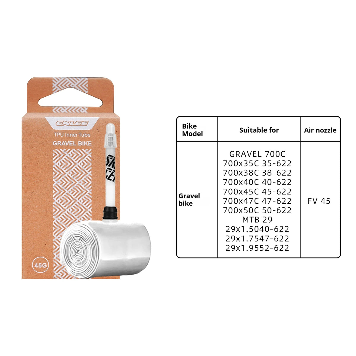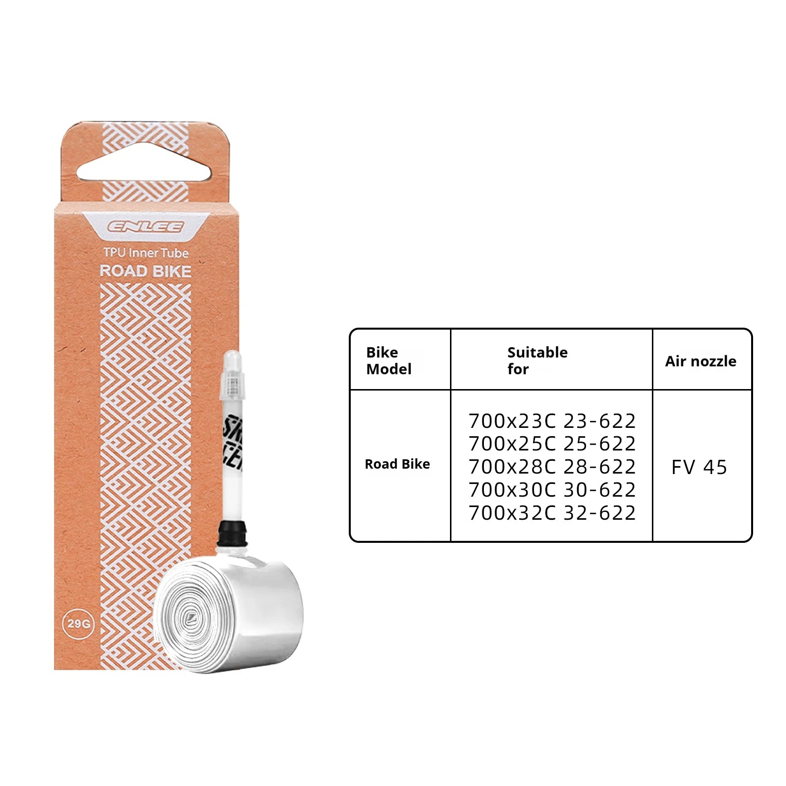 - 1 x Εσωτερικός σωλήνας Enlee 700C TPU με γαλλική βαλβίδα