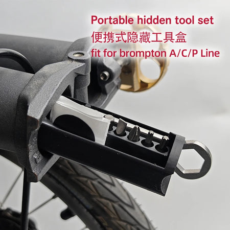 Introducing the Hidden Tool Box for Brompton accessories — the ultimate storage solution for your Brompton bike. This compact case fits neatly inside the frame, keeping your tools and essentials secure and ready for whenever you need them.