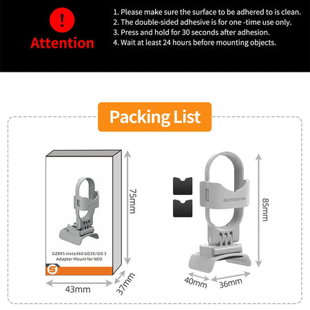 Ρυθμιζόμενος προσαρμογέας στήριξης Neo Drone για Insta360 GO 3 GO 3S είναι μια πολυλειτουργική βάση στήριξης σχεδιασμένη για το DJI Neo Drone, κατασκευασμένη για να κρατάει ασφαλή το Insta360 GO 3 ή GO 3S σας ενώ προσφέρει ευέλικτες επιλογές λήψης. Κατασκευασμένος από ανθεκτικό πλαστικό, αυτός ο ελαφρύς προσαρμογέας παρέχει αξιόπιστη προστασία και εύκολη εγκατάσταση ώστε να μπορείτε να εστιάσετε στη λήψη κάθε στιγμής, είτε πετάτε στους ουρανούς είτε καταγράφετε δυναμική δράση.