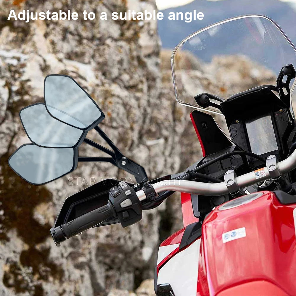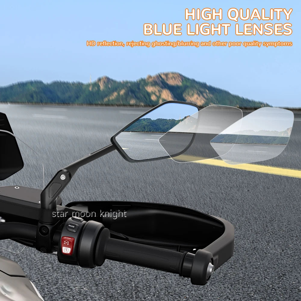 Αναβαθμίστε τη Honda Africa Twin σας με αυτά τα αλουμινένια αντιθαμβωτικά αξεσουάρ καθρεφτών οπισθοπορείας από τη Star Moon Knight. Σχεδιασμένα για τη Honda CRF1000D Africa Twin (2018) και τη CRF1100L Africa Twin (2020-), αυτοί οι καθρέφτες συνδυάζουν την ανθεκτική κατασκευή από κράμα αλουμινίου με εκλεπτυσμένη αεροδυναμική για να σας προσφέρουν καθαρότερη και ασφαλέστερη θέα του δρόμου πίσω σας. Οι καθρέφτες διαθέτουν ρυθμιζόμενο σχεδιασμό που κλίνει έως 90° αριστερά και δεξιά, ώστε να προσαρμόζετε την ορατότητα στη θέση οδήγησης και την άνεσή σας. Όταν η μοτοσυκλέτα είναι σταθμευμένη, ο καθρέφτης μπορεί να αναδιπλωθεί για να μειώσει την έκθεση σε χαλίκια και κοντινές μοτοσυκλέτες, βοηθώντας στην αποφυγή ζημιών κατά τις στάσεις ή σε στενούς χώρους.