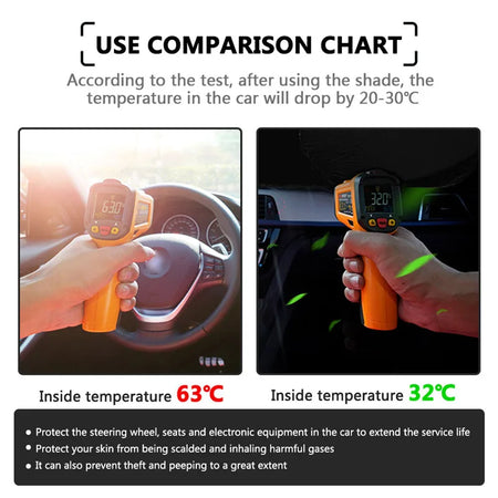 Αποχαιρετήστε τα καυτά ταμπλό και τα βραστό εσωτερικά. Κλείνοντας μια μεγάλη μερίδα άμεσων ηλιακών ακτίνων, μειώνει γρήγορα τις εσωτερικές θερμοκρασίες, προστατεύει τα ταμπλό και τους τροχούς από ζημιές από τον ήλιο, και καθιστά την επόμενη διαδρομή σας πιο άνετη από τη στιγμή που θα μπείτε μέσα.